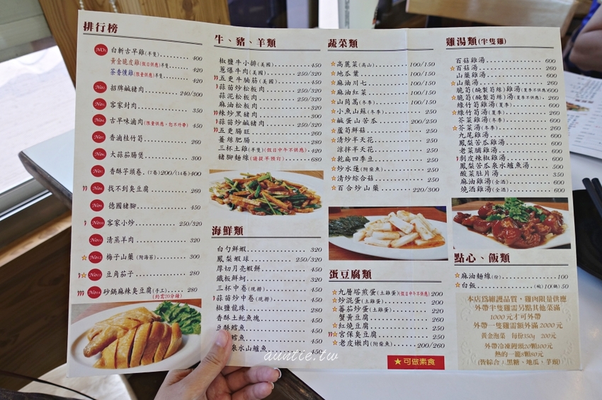 餐點種類也很多,菜單上有排行榜可以參考,白斬雞必點之外,還點了幾樣熱炒菜,因為只有兩人用餐,所以點的不多啦,最主要的就是想吃白斬雞,燻雞好像也很厲害,限量供應,而且已經賣完了😂,上陽明山必吃的小饅頭,在這裡是點滿500元就送,不像其他家都是單點的,還蠻划算的!