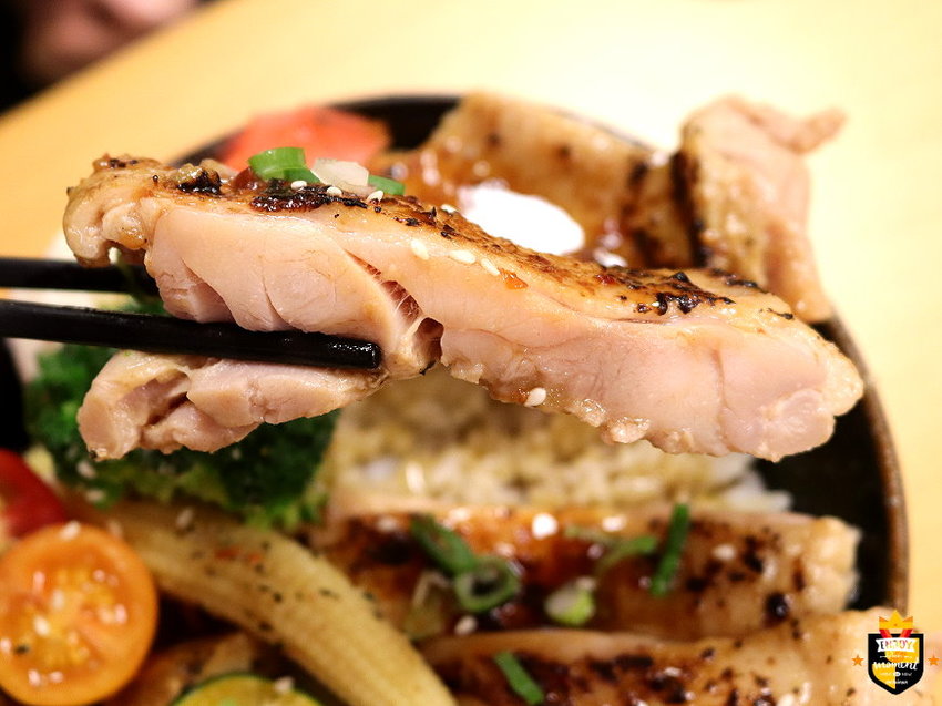 黃金嫩雞腿丼:嚴選六兩雞腿肉,經過24小時的真空醃製入味,再以低溫慢煮2小時,最後再冰鎮一天讓肉質保有Q彈度