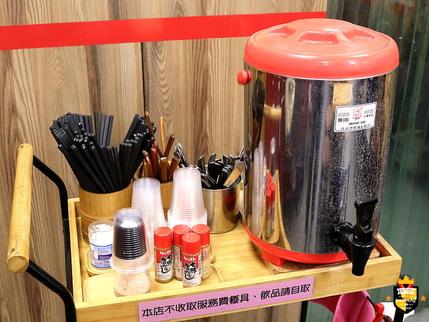餐具、調味料、檸檬水自取