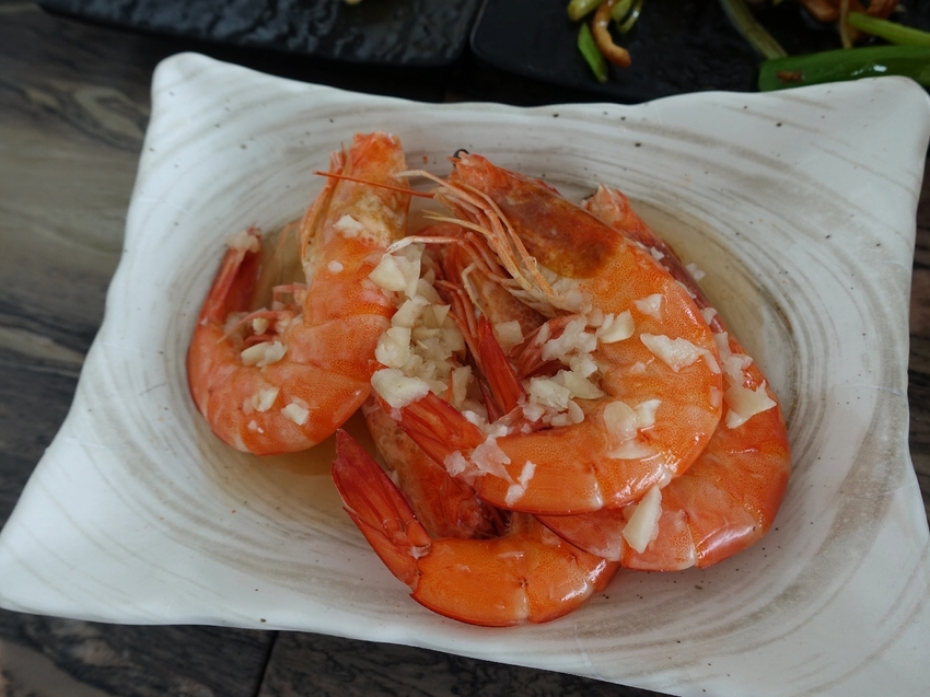 蝦子非常新鮮,看起來份量不多,但每隻蝦子肉質都十分厚實,用簡單的蒜頭提味就非常鮮甜好吃。