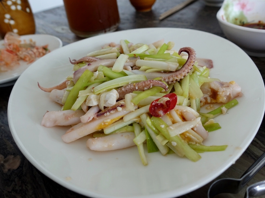 最後的清炒魷魚中加入了鹹蛋一起拌炒,也是我很少會吃到的口味,這樣料理也十分的下飯,後來有再加點了白飯來吃,這邊的料理真的是會讓人不自覺把飯菜全部吃光光啊!菜色的部分主要是由老闆娘每日採買調配,所以菜色也不會每次一樣唷,這也讓我很想再去吃看看,下次許願要再去拍漂亮的日落美景跟吃浪漫晚餐。