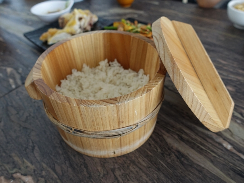 白飯用可愛的木盆裝著超級可愛的,也可以保持飯的溫度比較不會冷掉。