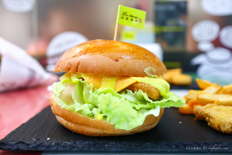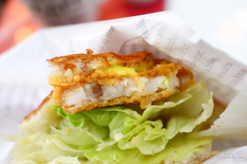 記得一起咬,從酥酥的漢堡包再到起司與魚排,最後是生菜,層次豐富,飽足感滿分