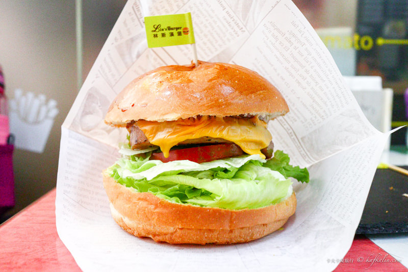 林斯漢堡的店面很小巧可愛,遠處就可以看到大大的漢堡與「林斯漢堡」四個大字,代表林斯漢堡到囉