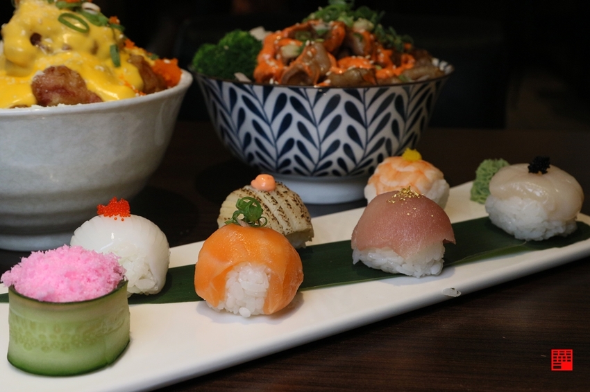 花樂食堂的手逑七點盛,結合了不同的食材,製做出不同的料理,生魚片、干貝等食材新鮮不在話下,我個人覺得最特別的是使用櫻花鬆製作而成的粉紅色握壽司,口感偏鹹,非常值得一試。