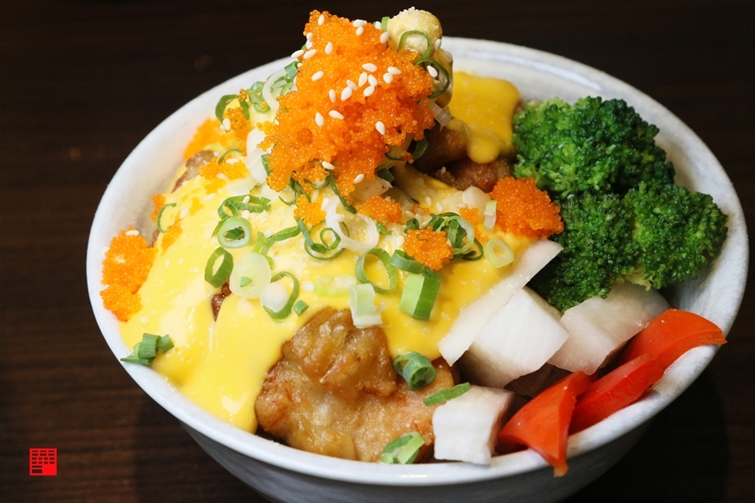 光看就覺得浮誇的熔岩起司炸雞丼,炸雞使用黃金比例的特調醬汁醃製,足足有1.5隻雞腿的份量;起司則選用切達起司、莫紮瑞拉起司等三種起司混合而成,製作過程不含一滴水,上桌前老闆還會再撒些許起司粉來提味,因此有超濃郁的起司味跟香氣。
