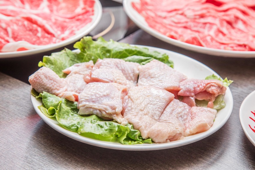 雞腿肉質超厚,可以先放進湯裡煮,讓湯底的味道徹底地吸收到雞肉裡面,雞腿不僅事先去骨,厚切帶皮的切法讓雞肉吃起來非常有口感,而且也能保留較多的肉汁,吸飽了湯汁入口鮮嫩多汁,超好吃!