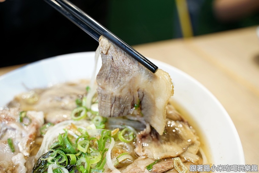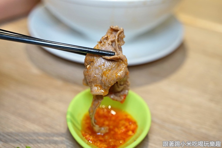 另外,熟牛的部分是比較有帶筋及油花的部位,是嫩中帶點嚼勁的口感,而且牛肉味道蠻明顯的,客人可以吃到兩種不同的牛肉口感還挺豐富~