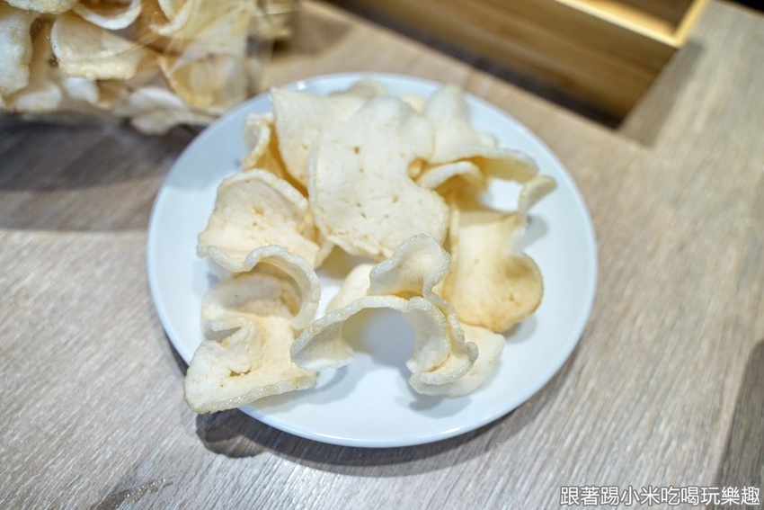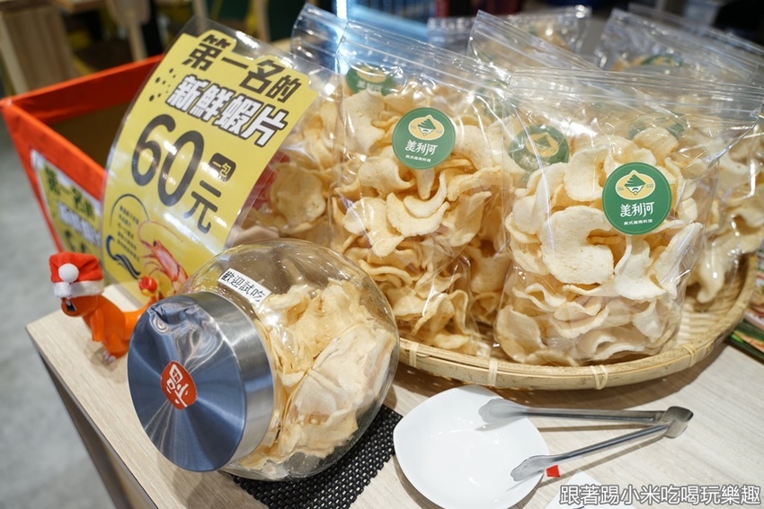 在櫃台上還有販售新鮮的蝦片,還提供試吃喔!大家不妨來試試,這個的蝦片真的好吃,又脆又有鮮蝦味。