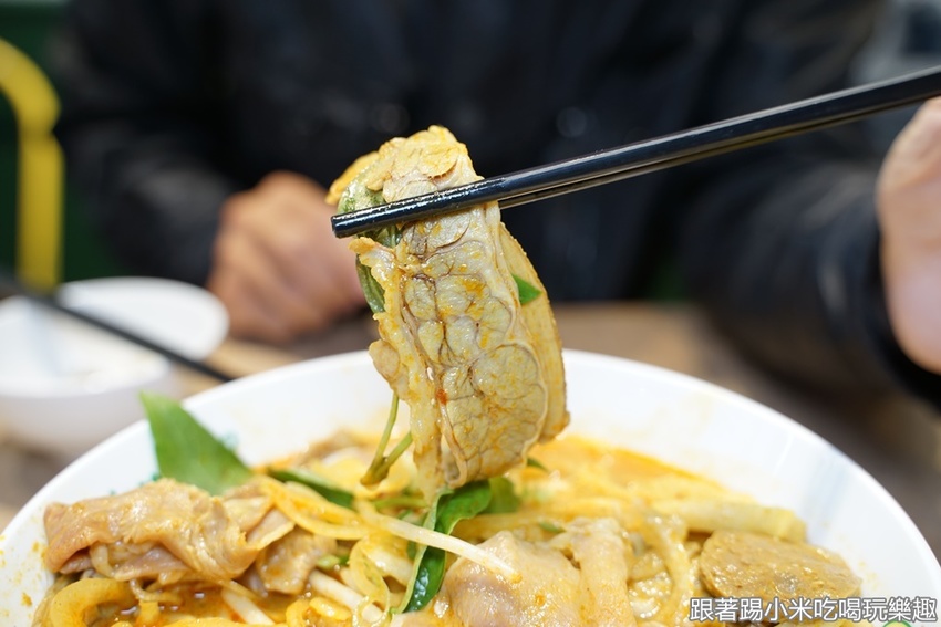 南洋咖哩的口味裡面最頂級的咖哩牛三寶(210元)。小米覺得已經不只三寶了,不僅是有生牛肉、熟牛肉、還有牛百葉跟牛丸,對於愛吃牛的朋友來說會覺得很豐富。