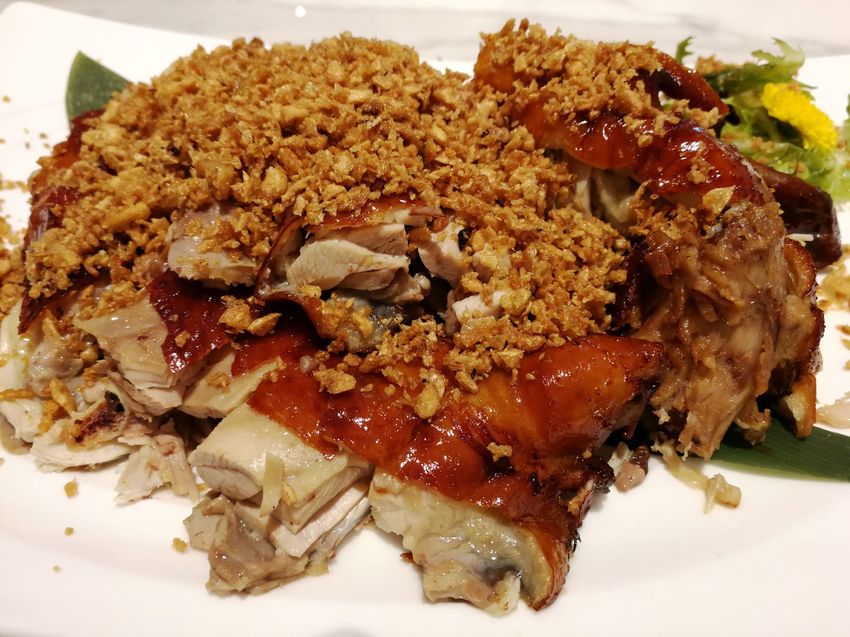 此次到萬麗軒用餐,是特別沖著一道菜而來的,就是"大漠風沙吊燒雞"。光聽這道菜的名字就覺得很有意思,官網上介紹這是一道傳統道地粵式名菜,但是有別於常見燒雞作法,主廚特別撒上滿滿炸至金黃酥香的"避風塘",看似風沙一樣,便取名"大漠風沙"。在萬般期待中,這道菜終於上桌,果然沒有令人失望,讓人感受到了大漠風沙的味道。主廚另外附上了檸檬汁提味,不論是沾或不沾,這道吊燒雞的味道都極好,而沾上檸檬汁之後,更是有種清爽的感覺。
