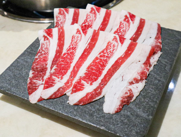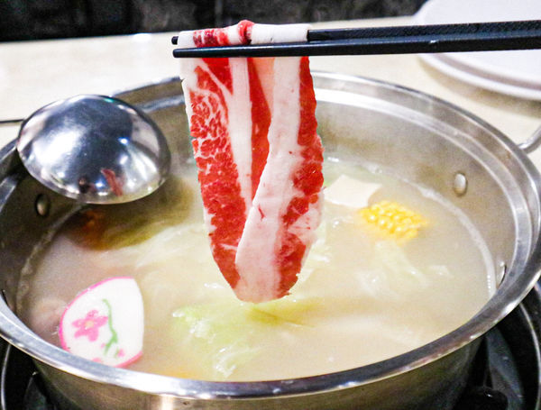 肉品有牛肉或豬肉可以選擇,我們選擇了雪花牛,油花很豐富,輕輕涮熟後肉質鮮嫩帶點嚼勁,讓你不只吃海鮮也有肉可以享用!很滿足~