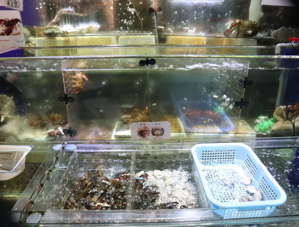 一進店門口就有一個水族箱裡面各類海鮮活跳跳的應有盡有~聽說都是現撈現殺現煮的!光看到就很期待等等的餐點,