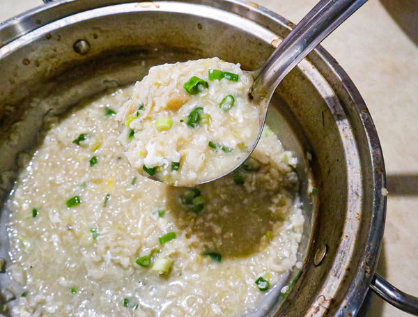 還有加入干貝跟吻仔魚整個質感大升級,最後來這一碗粥真是完美結尾~第一口吃下去超美味驚艷!鹹香味及海鮮的湯頭整個很甘甜,真的是全部吃光光呢!