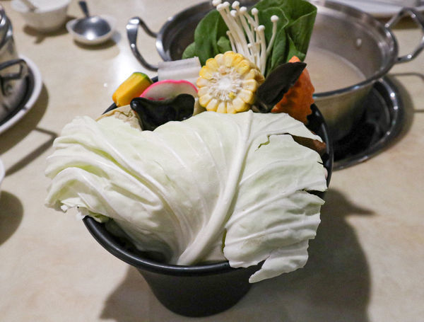 綜合菜盤沒額外加工品,都是天然蔬菜~搭配鮮美海鮮精華的湯底簡單燙熟就是美味~