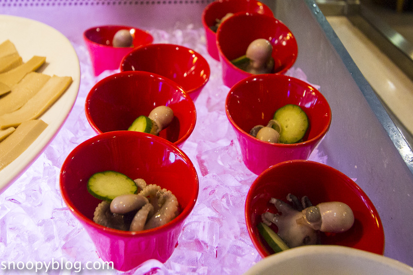冷盤的部份提供了生魚片、貴妃鮑魚片、中卷、鮮蝦、淡菜等,
