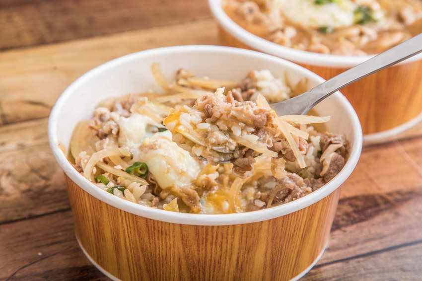 等候一段時間拿到餐點囉!我們點的是日式牛肉丼$85/日式親子丼$75,拿到丼飯真的份量十足!而且不到一百元,雖然便宜,但口味才是王道,來幫大家開箱吧!