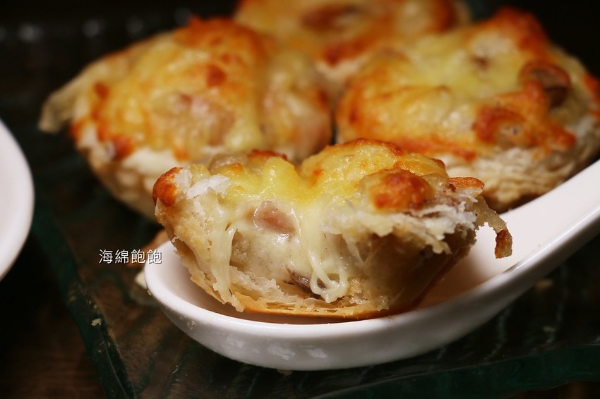 可愛的海鮮小塔,朋友輕輕一咬起司牽絲