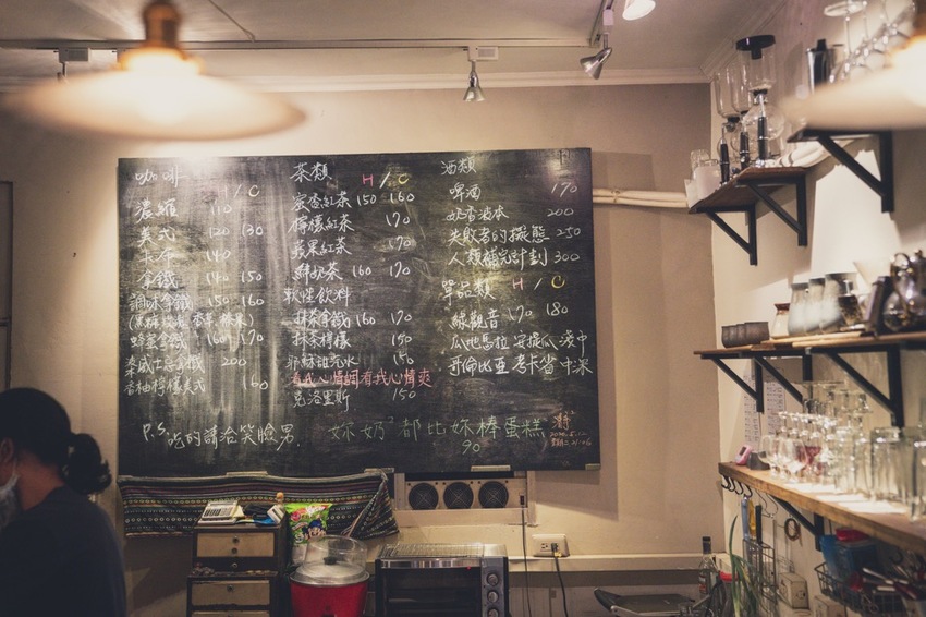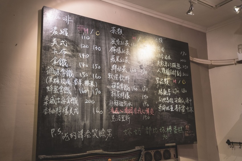 手寫黑板菜單賦予空間的溫度所在,專賣咖啡、飲料、酒類,偶爾會有蛋糕的出現
