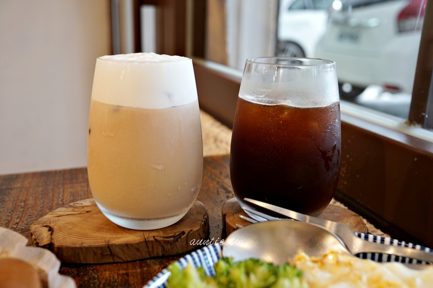 無糖鮮奶茶,茶香奶香都有點淡;朋友的美式咖啡喝起來很順口,反倒比較好喝!