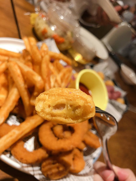 海陸大拼盤(350元)一樣有脆薯,不過多了雞翅、魷魚圈,雞翅我沒有吃到,哈哈哈太多東西要吃,但是魷魚圈真的很好吃,如果人不多的話,建議可以單點地瓜球跟魷魚圈啊!