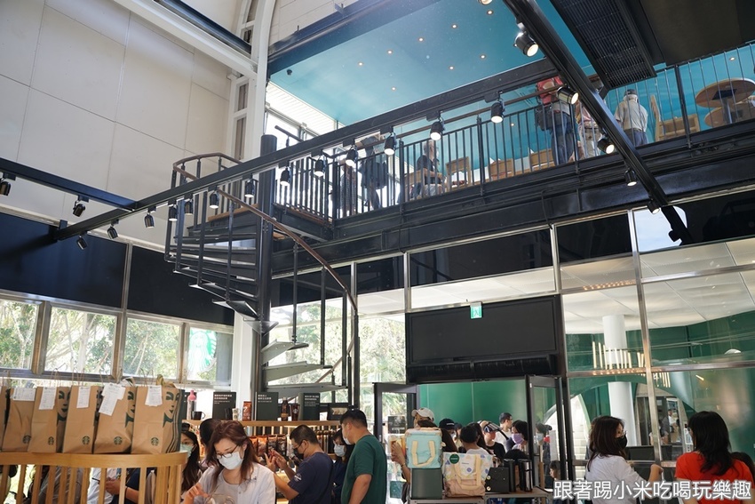 動物園星巴克是沿用以前的遊客服務中心改建,前面像碉堡設計2樓是星巴克的內用空間,從樓梯走到B1則是動物園圖書館。
