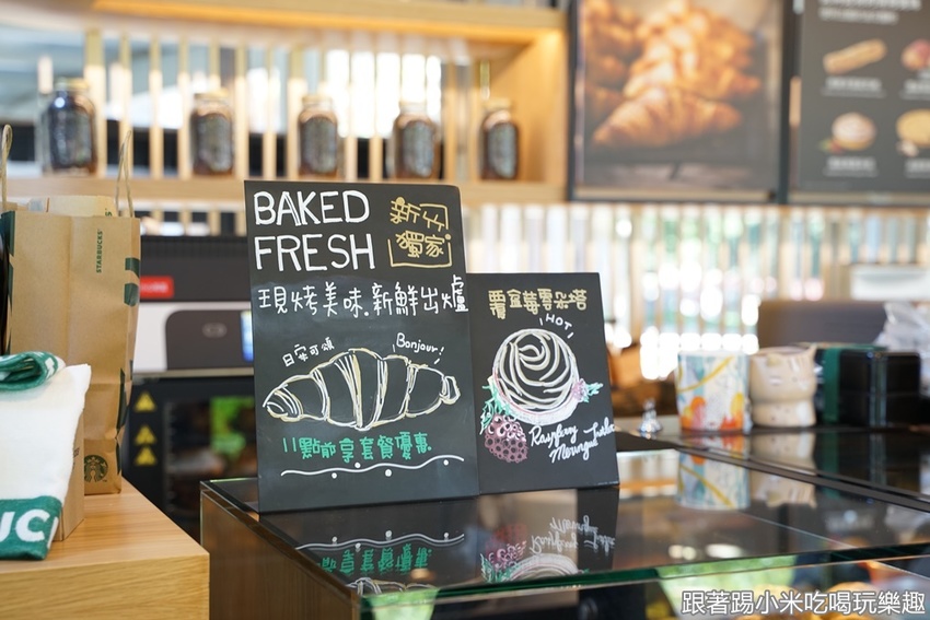 在原有的星巴克飲料外,還有新竹縣市首間引進新鮮現烤(Bake-in)的門市,原料可是法國進口直送到門市,在門市內現烤香噴噴~
