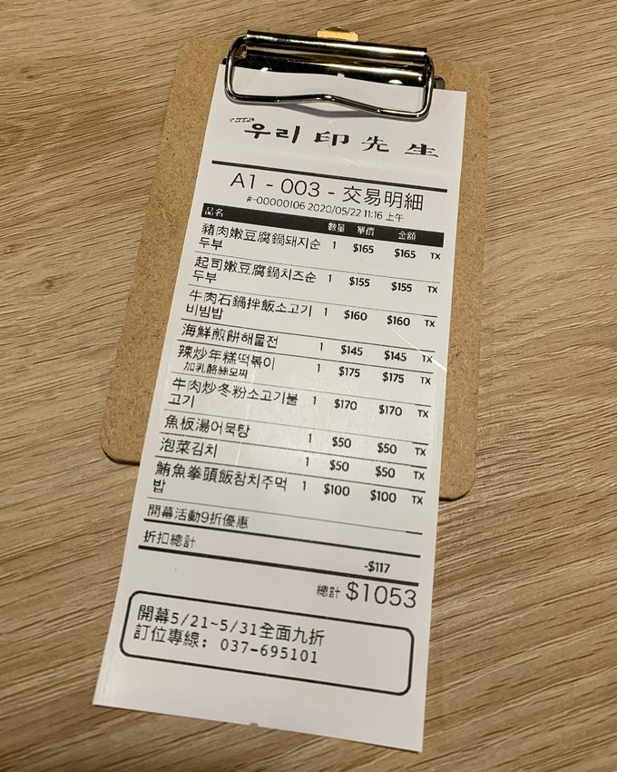 手工泡菜一致跟朋友覺得沒有韓味,只有酸脆重鹹的口感,反而沒有辣脆的口感,也難怪沒有販售泡菜口味的豆腐鍋,所以泡菜部分有些失望。當天一整桌消費只要1000元出頭,打完九折後,平均一個人只要263元真的是非常可以呢!不過整體餐點還是有可圈可點的地方,期待之後正式開幕後的口味了!