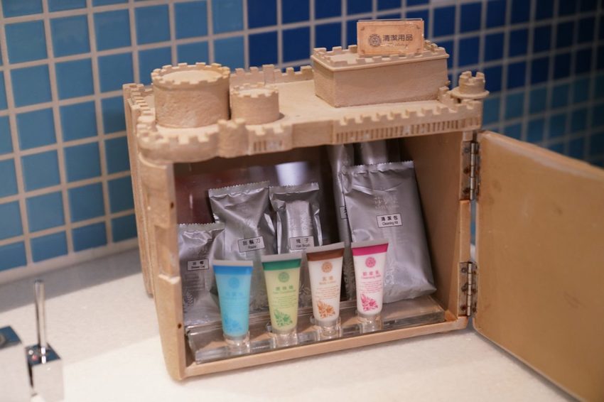 這個小城堡太有趣了,裡面是滿滿的棄式盥洗用品,讓你不用緊張兮兮的準備,隨時過來休憩,滿足你的所有需求。