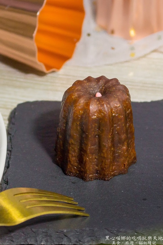 可麗露 - 這源自於南法波爾多地區的小巧甜點,焦糖色澤的樸實外表酥脆甜蜜,不規則孔洞內層,則是充滿溫柔蘭姆酒香氣且富有彈性,在第二顆鈕釦甜點師的巧手改造下,添進巧克力和伯爵紅茶,讓口味選擇不只有原味蘭姆酒香,滋味又更上層樓、優雅又令人眷戀。