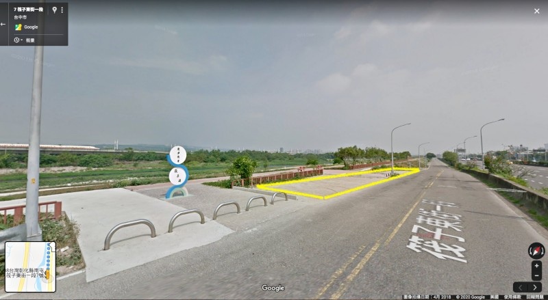 建議開車或騎車前往筏子溪門戶迎賓水岸廊道,但是這裡並沒有規劃良好的停車空間,只有兩個地方比較適合停車(框框內的黃線處),如果沒有交通工具的話,這邊並沒有公車停靠,就只能考慮搭乘計程車囉!