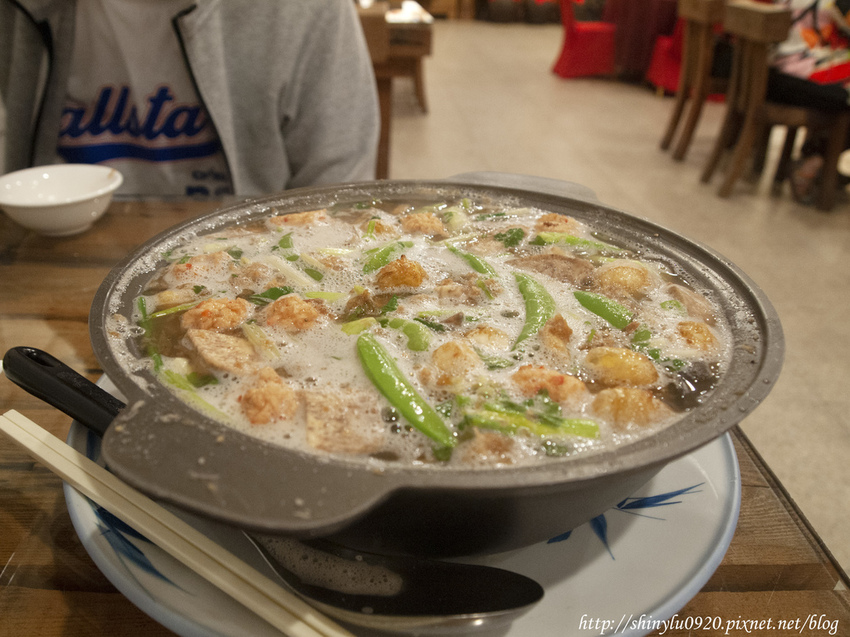 它是屬於比較清楚的米粉燙,油蔥的香氣我還滿喜歡的,裡面有炸鳥蛋跟其它火鍋料,米粉煮的很軟,如果平常喜歡吃硬口感米粉的人,可能比較不喜歡,但這鍋是小份才賣$250,我個人覺得CP值很高
