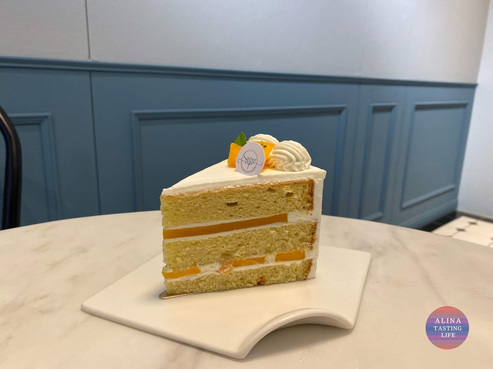 這個切面真是有夠工整的,甜點師的技術真好啊,我真的第一次看過這麼工整的芒果!
