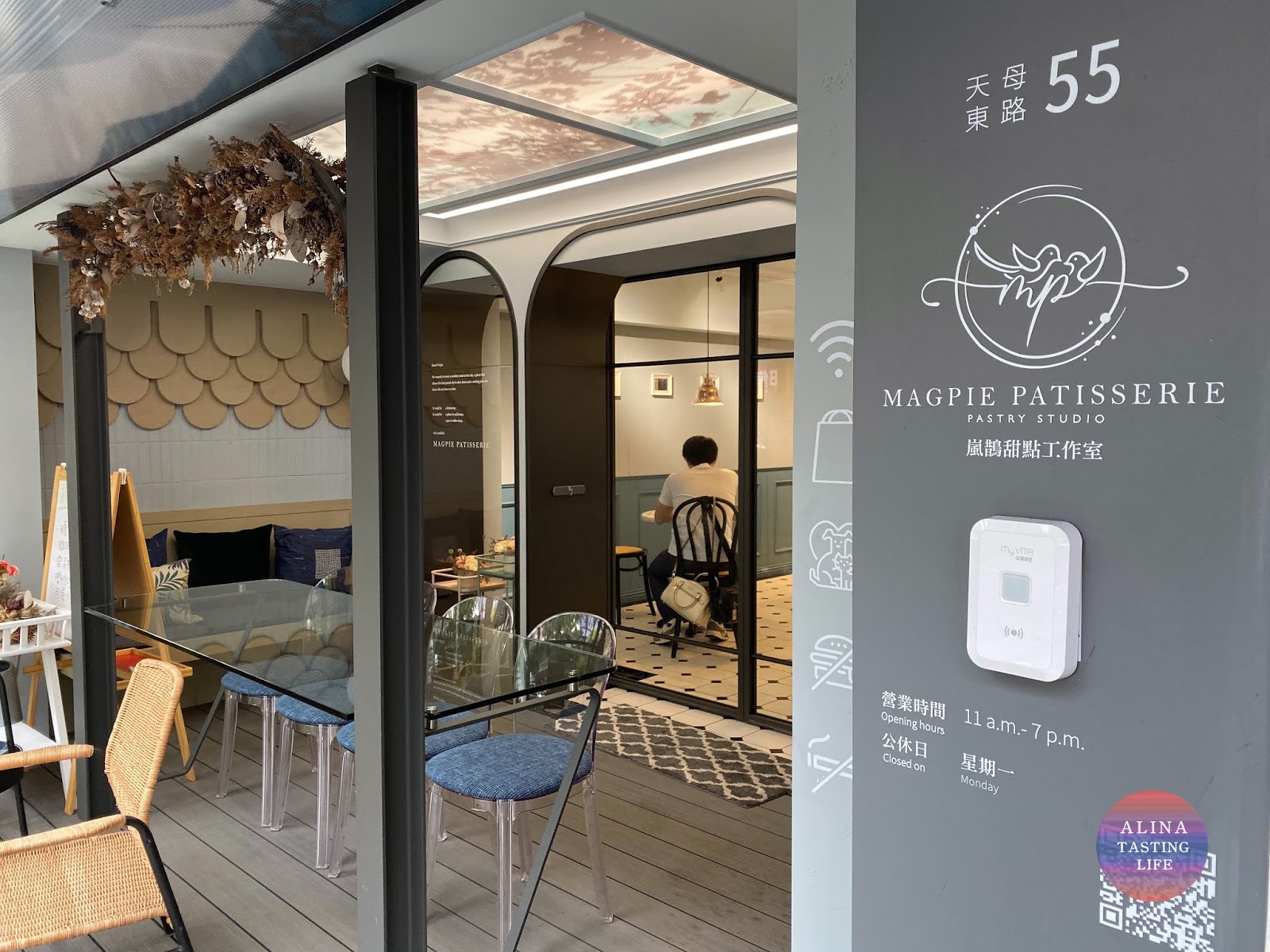 走進來看到這個圓弧造型的玻璃門和落地窗,相當有質感了,搭配前面掛的乾燥花,我覺得好像來到南法風情的小鎮!
