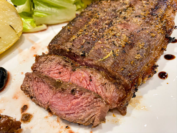 prime級板腱牛排五分熟的熟度,富有嚼勁但硬度剛好,