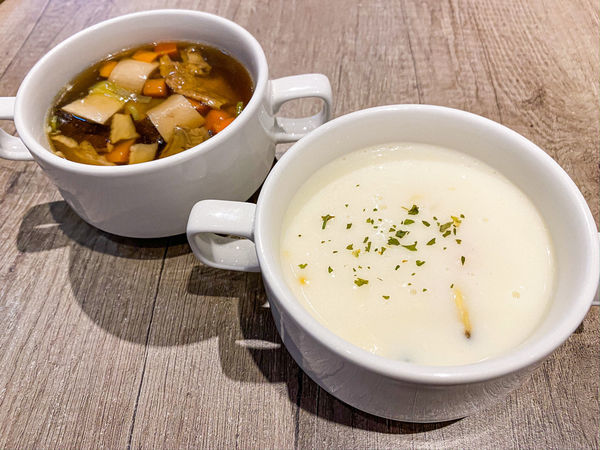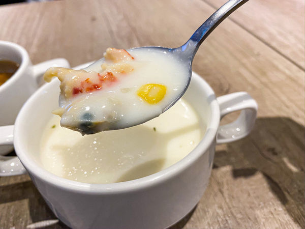 濃濃奶香的海鮮濃湯,裏頭有海瓜子和魷魚及螯蝦~很豐富