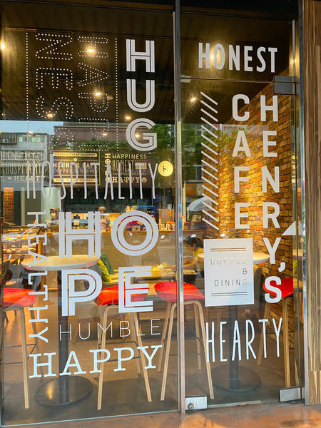 坐落在馬路邊,招牌設計很特別~大大的落地窗看起來環境就很寬闊