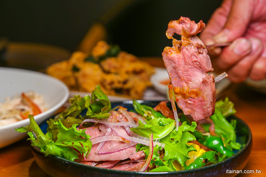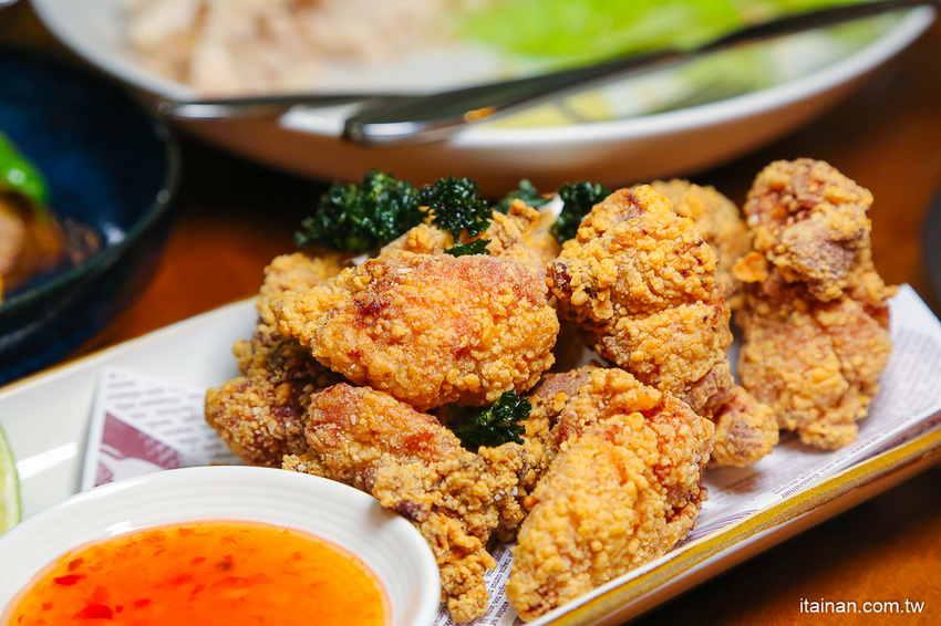 這道薑味炸雞也是讓我一吃就難忘的滋味,挑選的雞肉部位是腿肉,完全無骨且鮮嫩。咬入口都還能看的到肉汁鎖在雞肉裏頭,嫩又多汁。帶著酥脆卻不乾的外層,入口的薑味完全不嗆辣,反而是讓人有種提出味蕾的感覺,一口接一口不膩的滋味,是一道大人小孩都會喜歡的料理。