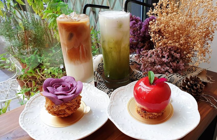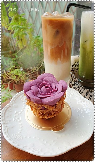 紫色浪漫,以紫薯內餡刻畫出一朵綻放的花朵,並結合杏仁蛋糕、蛋白餅以及手工塔皮而成的浪漫甜點。紫薯華麗厚重的紫色以及清甜綿軟的口感讓人慾罷不能,還有酥脆的塔皮,再加上中間的卡士達醬、鮮奶油的清爽不甜膩,整體來說連男孩S都很愛的滋味呢