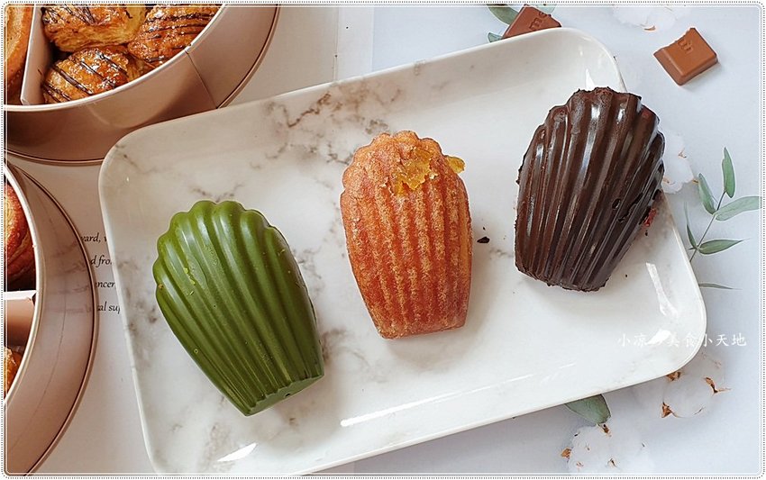 禮盒內可以放上三個瑪德蓮,目前有三種口味可選(檸檬柚子、頂級可可、抹茶麻糬),也可選綜合口味!