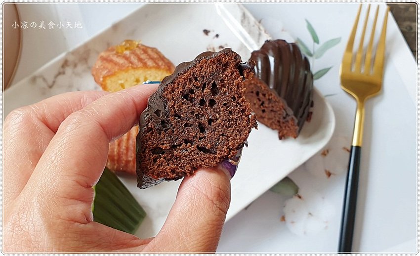 頂級可可瑪德蓮,這算是大人的可可滋味,不甜膩帶點濃厚的巧克力味道,不管是剛從冷凍拿出來就吃,或是稍微回溫後再享用風味都不一樣、但可以說的是兩種口感我都愛,因為不甜膩的甜點多吃一個就沒問題囉~~