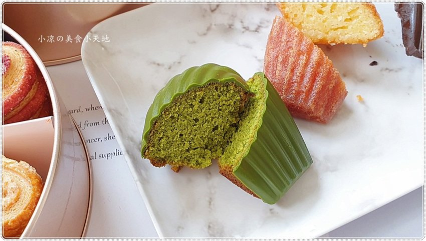 抹茶麻糬瑪德蓮,外表刷上了一層宇治抹茶醬,讓茶香濃韻更足。入嘴帶了點微微的茶澀味,但一下子就被濕潤鬆軟的蛋糕體給取代掉,那不經意的麻糬QQ的口感頓時出沒,要是吃太快還不容易發現呢,細細品嚐才能感受到店家手作的用心!