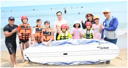 ▲衝浪的人很多,沙灘可以玩沙,大人小孩都很忙