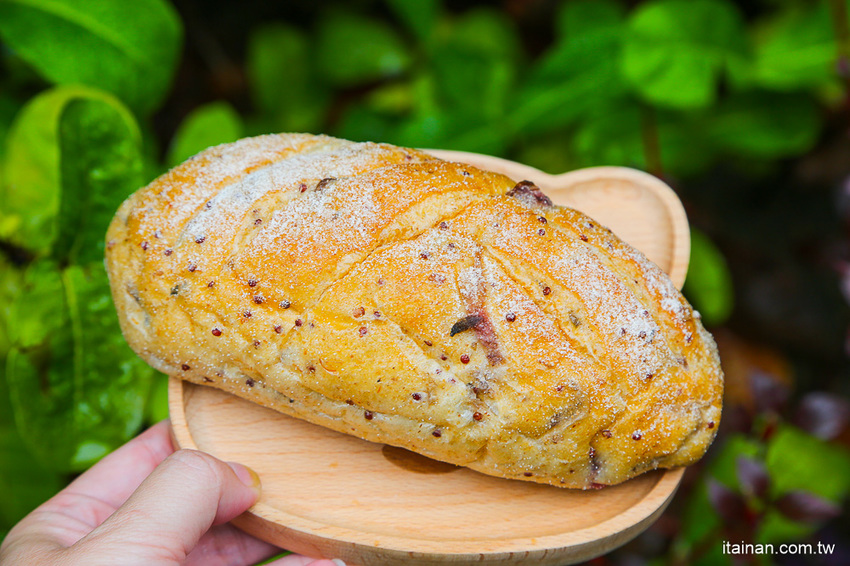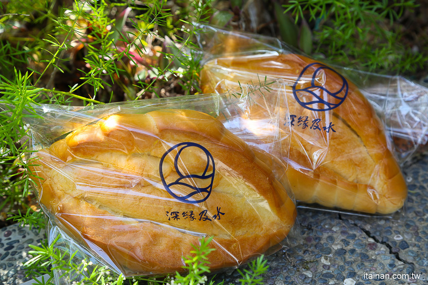 鮮奶吐司分為有切跟沒切,我喜歡沒切的,直接抓著吃更有口感。「深緣及水」的吐司就連吐司邊都不乾硬,吐司口感都是偏綿細鬆軟,微微的奶香,因為是手工製作加上不添加膨鬆劑,所以每一個麵包跟吐司的外型雖然都不是很漂亮、甚至大小形狀略有差異,但講求天然就是好。