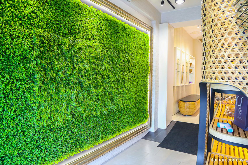 店內的裝潢是邀請關廟的在地師傅手工編製的竹編,打造出以前農業時代裝水果的竹籃感,竹編上左右兩顆鳳梨的藝術設計,更是代表著關廟指標性農產(鳳梨),像是藝術般的裝潢,透露出濃厚在地風格。