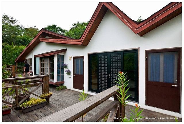 循著石頭小徑進入「湖畔花時間」,四周皆是看似率性配置的庭園造景,而木造風格的建築就適切地與青山和草木融合共生……聽著蟲鳴鳥叫、呼吸新鮮空氣~好舒服呀~~度假本該這樣!