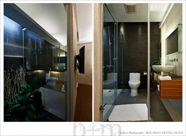 這間房的最大特色就是有個小小室內造景!雖然浴室不是像前面兩間都是全透明玻璃的半開放式風格,但多了小造景看起來格外舒服。