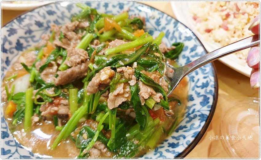小涼還是頭一次吃到牛肉燴飯內有番茄的滋味,想不到很搭,而且多了一層風味,番茄的甜融合燴飯的鹹香,讓滋味不那麼的厚重,吃起來還滿清爽的! 牛肉給的不少很柔軟不乾柴,鮮脆的空心菜、香Q的米飯入嘴後,會一口接著一口吃不停呢~