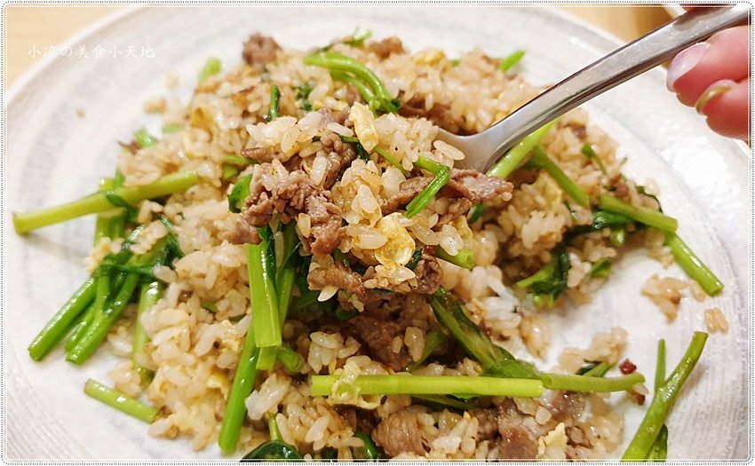 牛肉炒飯多了空心菜的鮮脆,加上柔嫩的牛肉、散蛋以及香Q米飯,拌炒再一起香氣十足,鹹香度還不賴!! 只是朋友覺得份量不多XD