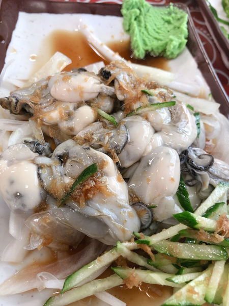 生蚵(100元)這是二訪時我們點的,主要是看到IG上拍阿宏師的生蚵份量超大,想說一定要試試,個人覺得輪鮮度沒有我在東石漁港吃的新鮮大顆,但是他的醬汁調味搭配下面的洋蔥黃瓜提味相當清爽,而且份量這樣100真的很實在